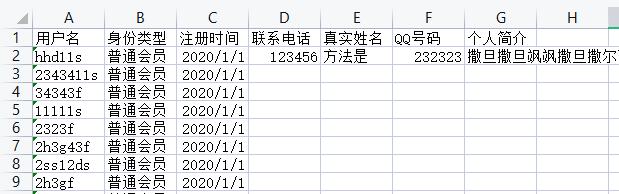 点击导出会员就可以下载excel表格信息了,效果如下: